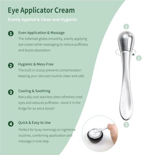 Eye Cream Applicator: This rotating applicator rolls on the eye area, aiding cream absorption, reducing puffiness and fatigue. The tail for scooping avoids direct contact, ensuring a cleaner use.
