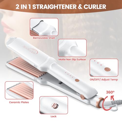 Specification: Sixriver 4 in 1 Hair Crimper, Straightener, and Curling Iron: Ceramic Flat Crimping Plates, Volumizing Tool with 15s Fast Heating (White)