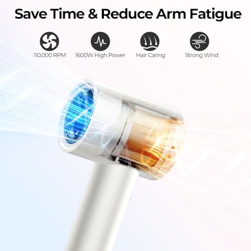 High-Speed Hairdryer for Fast Drying: Equipped with 1600W power and a 110,000RPM high-speed brushless motor, the drying time is dramatically reduced for efficient styling.