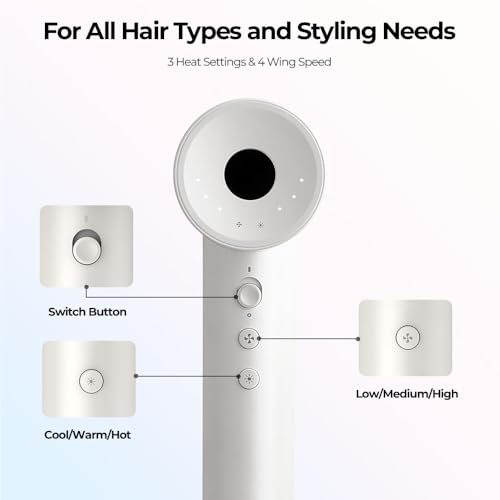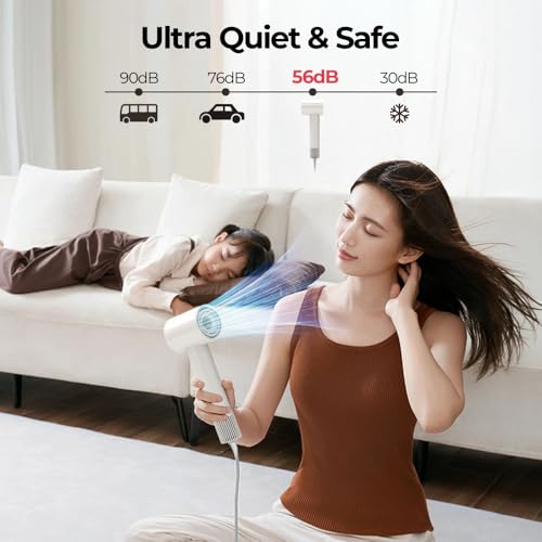 Specification: Nandme Hair Dryers for Women, 110000 RPM High Speed Blow Dryer, 200 Millions Negative Ionic Hair Dryer, 1600W Quiet Hairdryer for Travel, Hair Dryer with Nozzle, 4 Temp & 3 Speed Setting, White