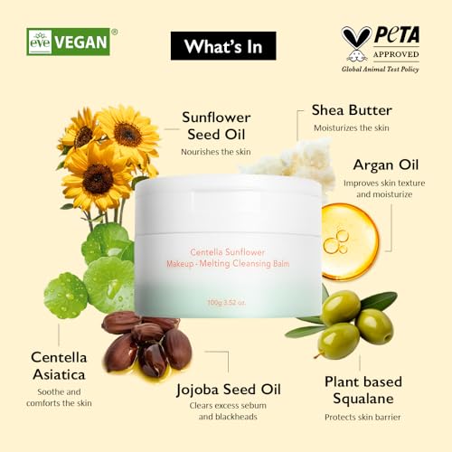 Specification: HARUHARU wonder Centella Sunflower Makeup-Melting Cleansing Balm 3.52 oz., Facial Cleanser for Heavy Makeup Removal, Korean Skincare