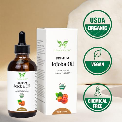 Specification: Celestial Psyché USDA Certified Organic Jojoba Oil (4 Oz) 100% Pure Natural, Chemical-Free, Hexane-Free, Hair Growth, Scalp Care, Skin Hydration, Nails Natural Beauty Enhancement, Anti-Aging
